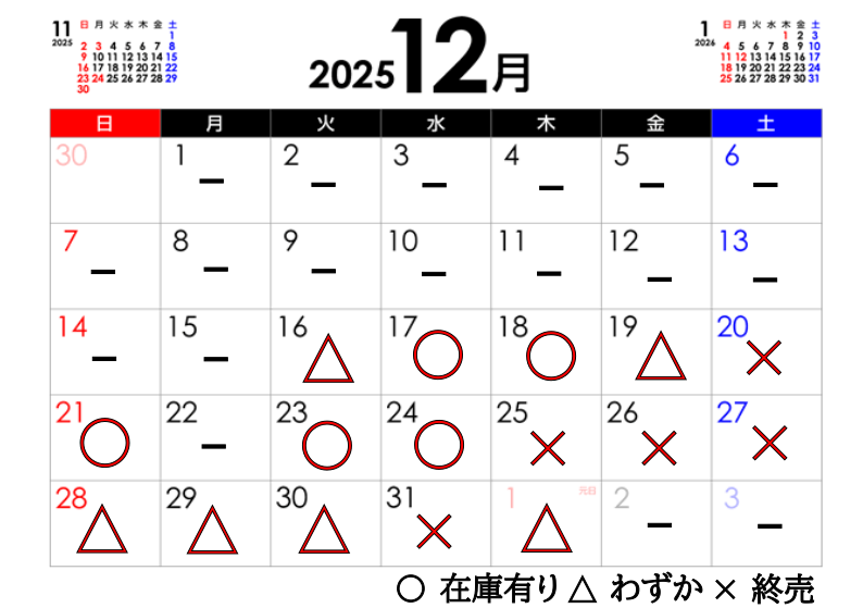 2025年12月16日現在の宅配セット受付状況